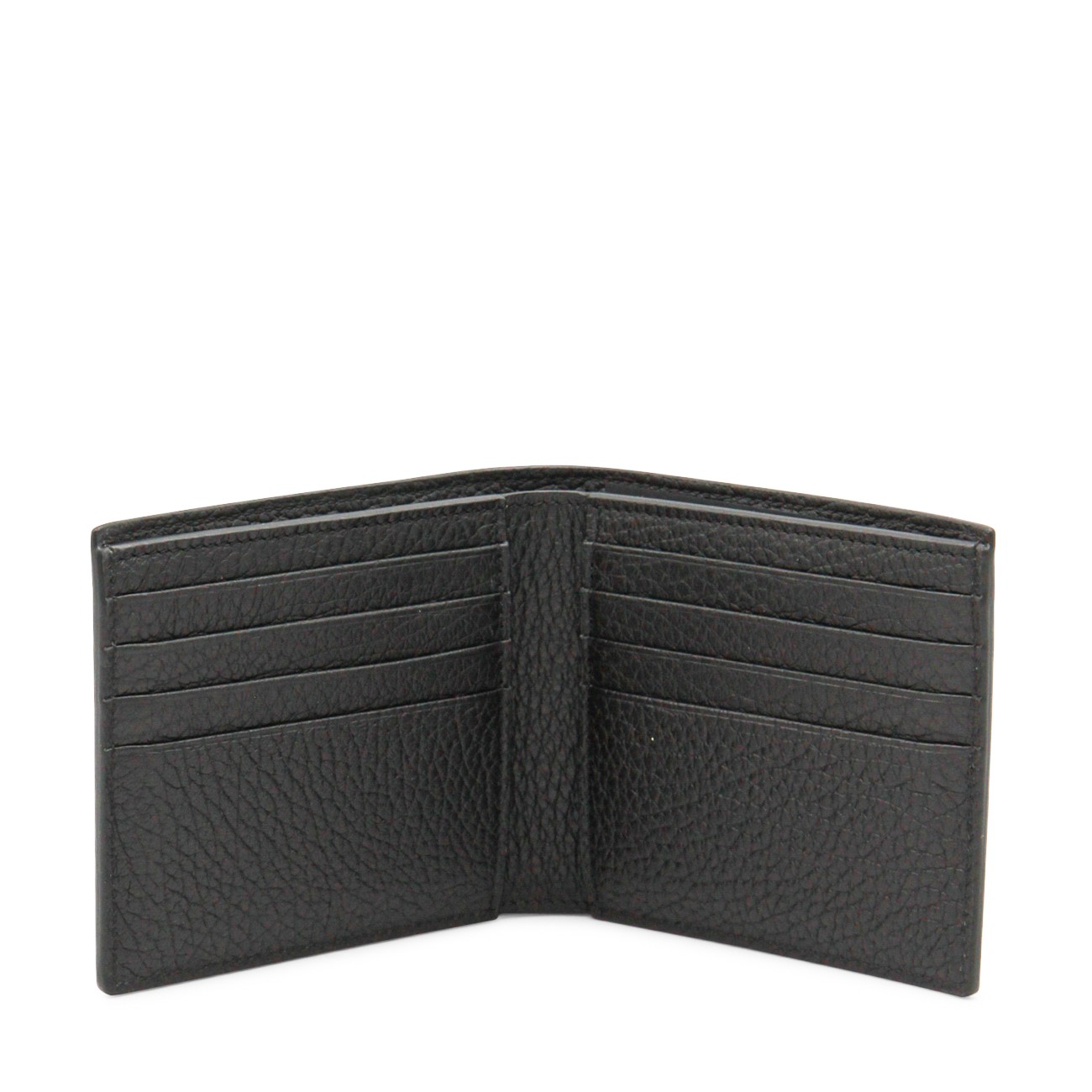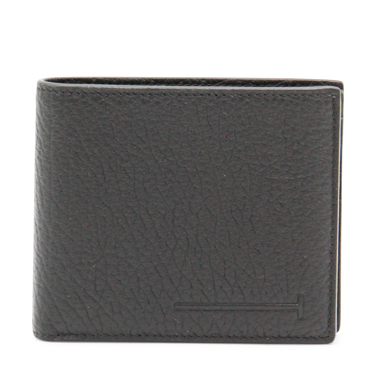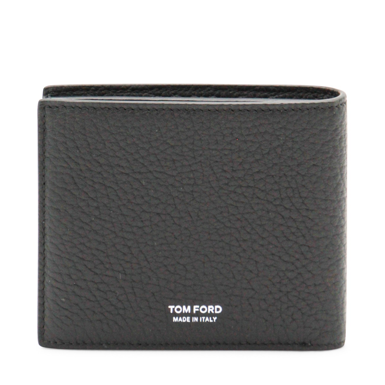 Black leather wallet from Tom Ford featuring rectangular shape, notes compartment and card slots.
