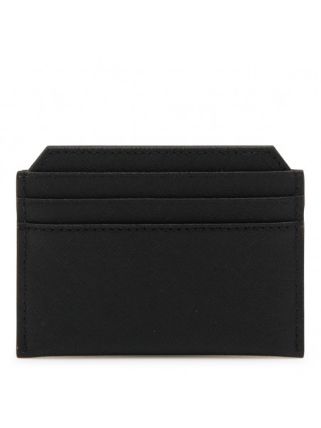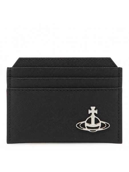 Black card holder from Vivienne Westwood featuring card slots, silver tone hardware and logo.