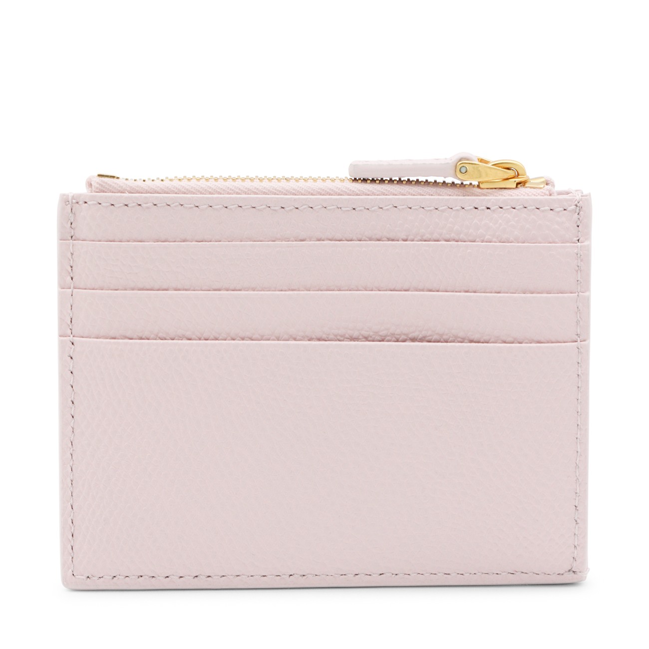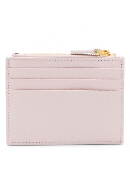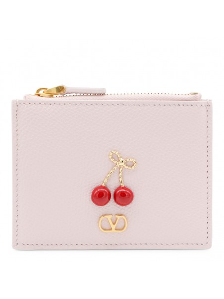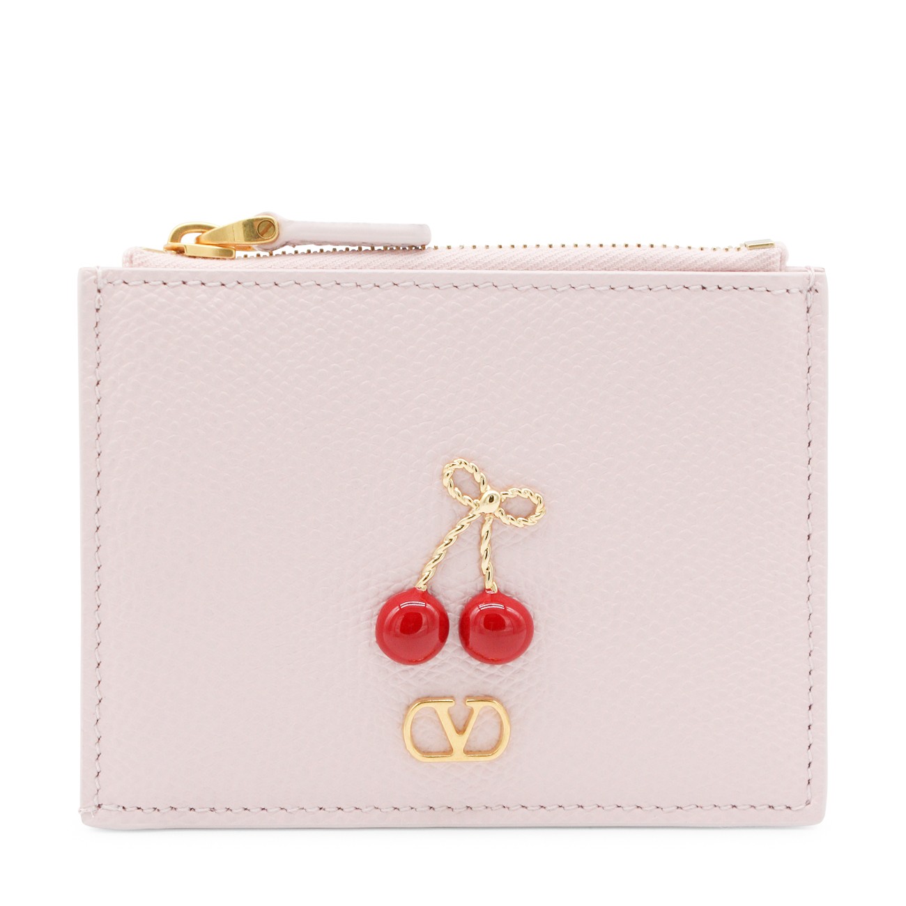 Rose leather wallet from Valentino Garavani featuring zip fastening, card slots, back detail and gold tone logo.