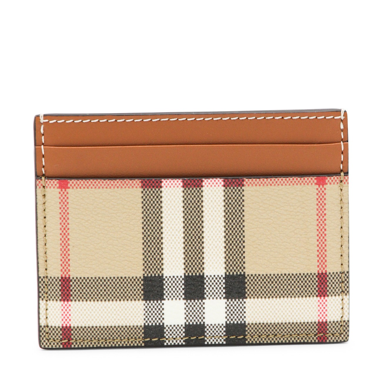 Beige card holder from Burberry featuring card slots and vintage check stamp.