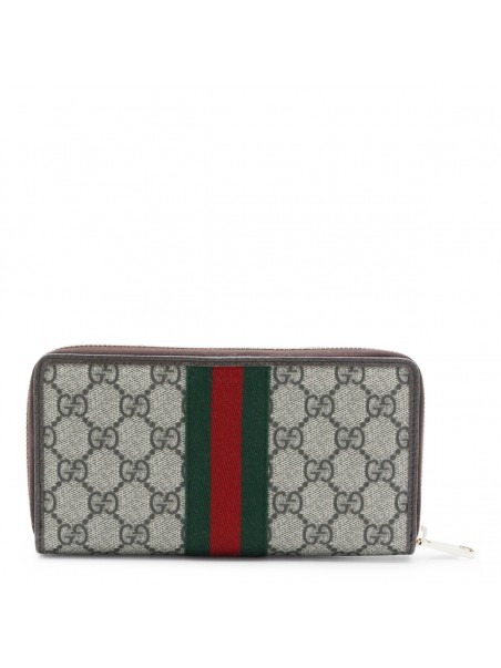 Beige wallet from Gucci featuring zip fastening, GG monogram, silver tone GG logo and main compartment.